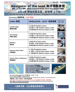 9) 有關更多郵輪資料,請看附頁。